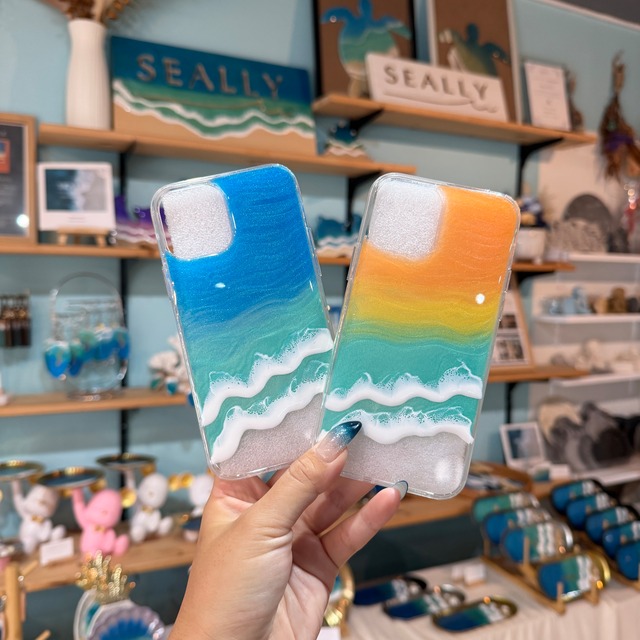 【クリアiPhoneケース専用ページです】 透明のiPhoneケースに色とりどりの海を施して、毎日の生活をカラフルに彩る唯一無二のiPhoneケース。 ケース周りはTPU素材のため、衝撃に強い仕様となっています。 ◼︎サイズ 備考欄に必ずiPhoneサイズをご記載ください。 ◼︎カラー ・Waimanalo Blue ・Kailua Blue ・Ishigaki Blue ・Hawaii Rainbow ・Ishigaki Sunset beach ◼︎ケース クリアタイプ ※TPU素材使用の衝撃に強いスマホケースを使用 ※場合によってはサイズが品切れのことがございます。その際はショップよりメールアドレスの方へご連絡させていただきます。 色の出し方や波の作り方は、レジンアーティストMAYUならではの技法。 レジンアートは、色の出し方から波の作り方まで ひとつひとつ全て異なり、同じ作品はひとつとしてありません。 世界に一つしかないあなただけの海をお楽しみください♡ ◆注意事項◆ <発送について> 商品は殆ど全てが受注制作となります。そのため、発送まで約3週間〜8週間ほどお時間をいただきます。納品時期は、オーダー数や時期により変動致しますので、具体的な納品時期を知りたい場合はメッセージにてご連絡ください。完成品のみのご購入の場合、配送のご依頼を受けてから5営業日以内に発送いたします。完成品とオーダー品を同時にご購入いただいた場合、オーダー品完成後に同時発送となりますので予めご了承ください。 <作品について> ひとつひとつ手作業で制作しているため、写真と同様の波の形や柄はお選びいただけません。また、丁寧に作業をしておりますが、エポキシレジンの特性上ヘコミ等がある場合や、細かな傷や稀に小さな埃等が混入する場合がございます。 作品制作時、アートを施す場所以外はマスキングを行なっておりますが、微量のレジン液が残る場合がございます。そちらもハンドメイド作品の一部としてお楽しみください。 <レジンの特性> ・できる限り、直射日光を避けた場所での保管をお願い致します。(高温になると変形する可能性がございます) ・衝撃を与えますと、ヒビや傷の原因となりますのでご注意ください。 ・レジンは傷つきやすい性質のため、強く擦らず柔らかい布で優しく拭いてお手入れをお願い致します。 ・ご覧頂く光の加減によって、色味が写真と多少違って見える場合もございます。 #レジンアート #海アート