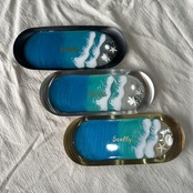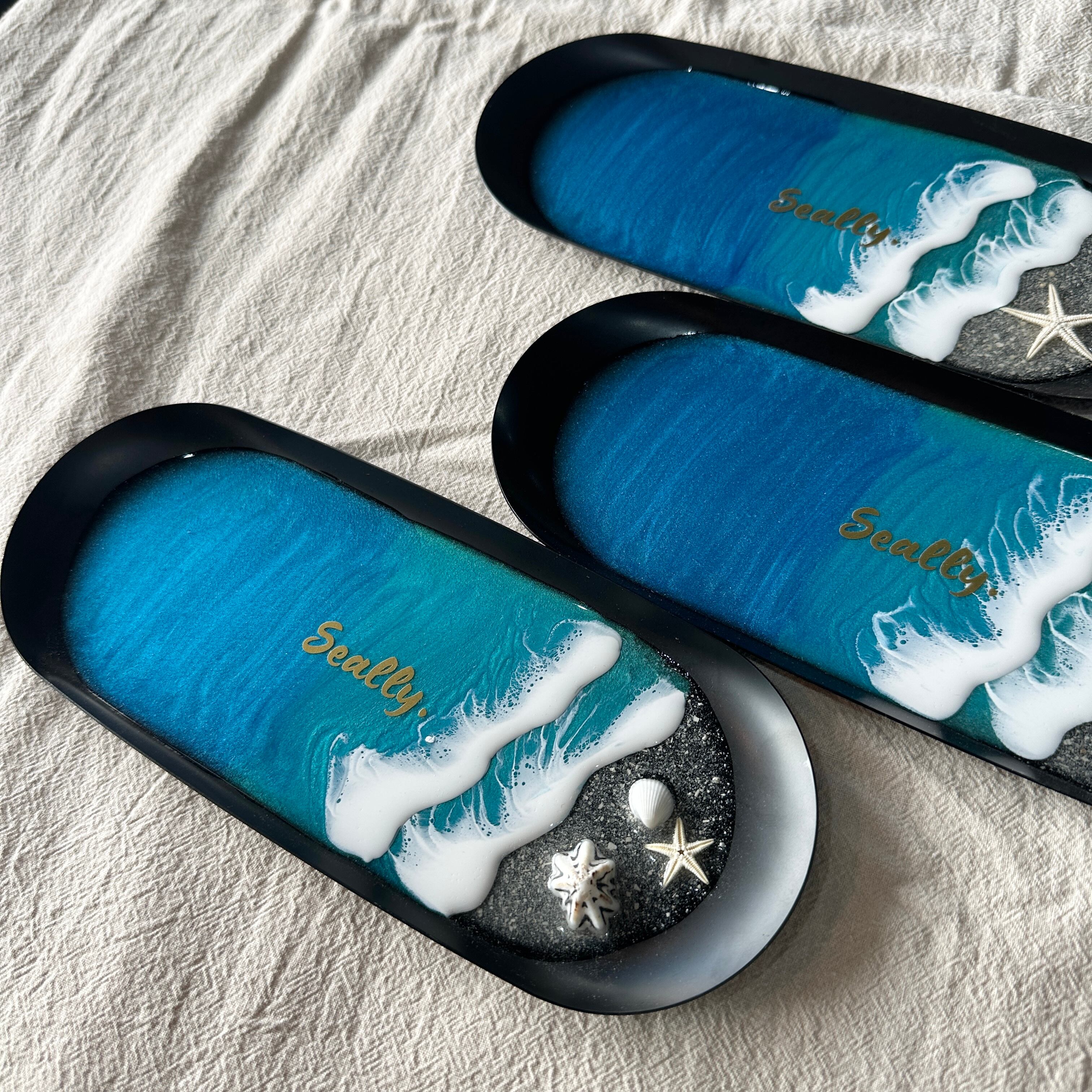 キラキラと輝く海に沖縄の砂と貝殻を装飾。使い勝手抜群のトレーです♡
