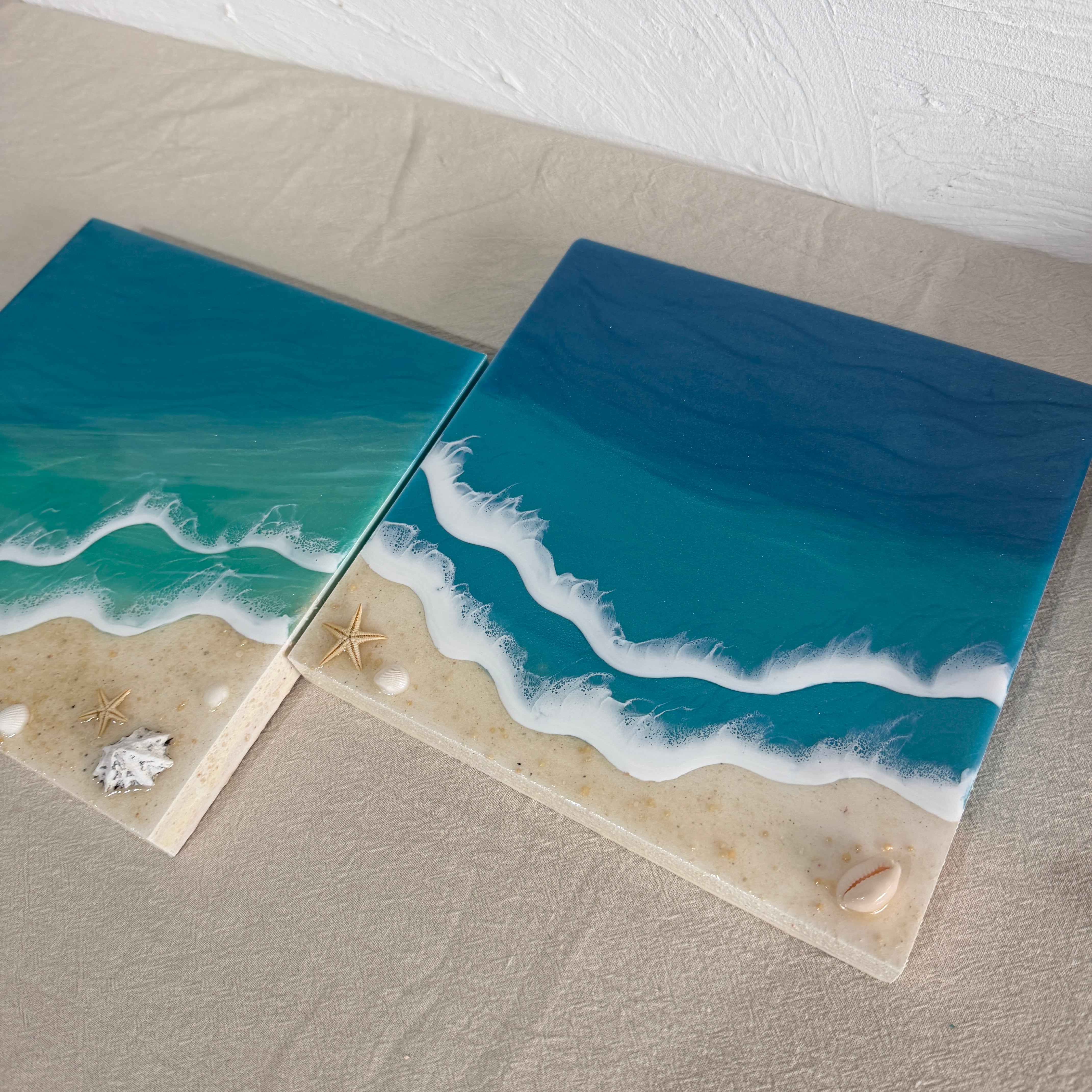 ひとつひとつ手作業で制作しているため、写真と同様の波の形や柄はお選びいただけません。また、丁寧に作業をしておりますが、エポキシレジンの特性上ヘコミ等がある場合や、細かな傷や稀に小さな埃等が混入する場合がございます。