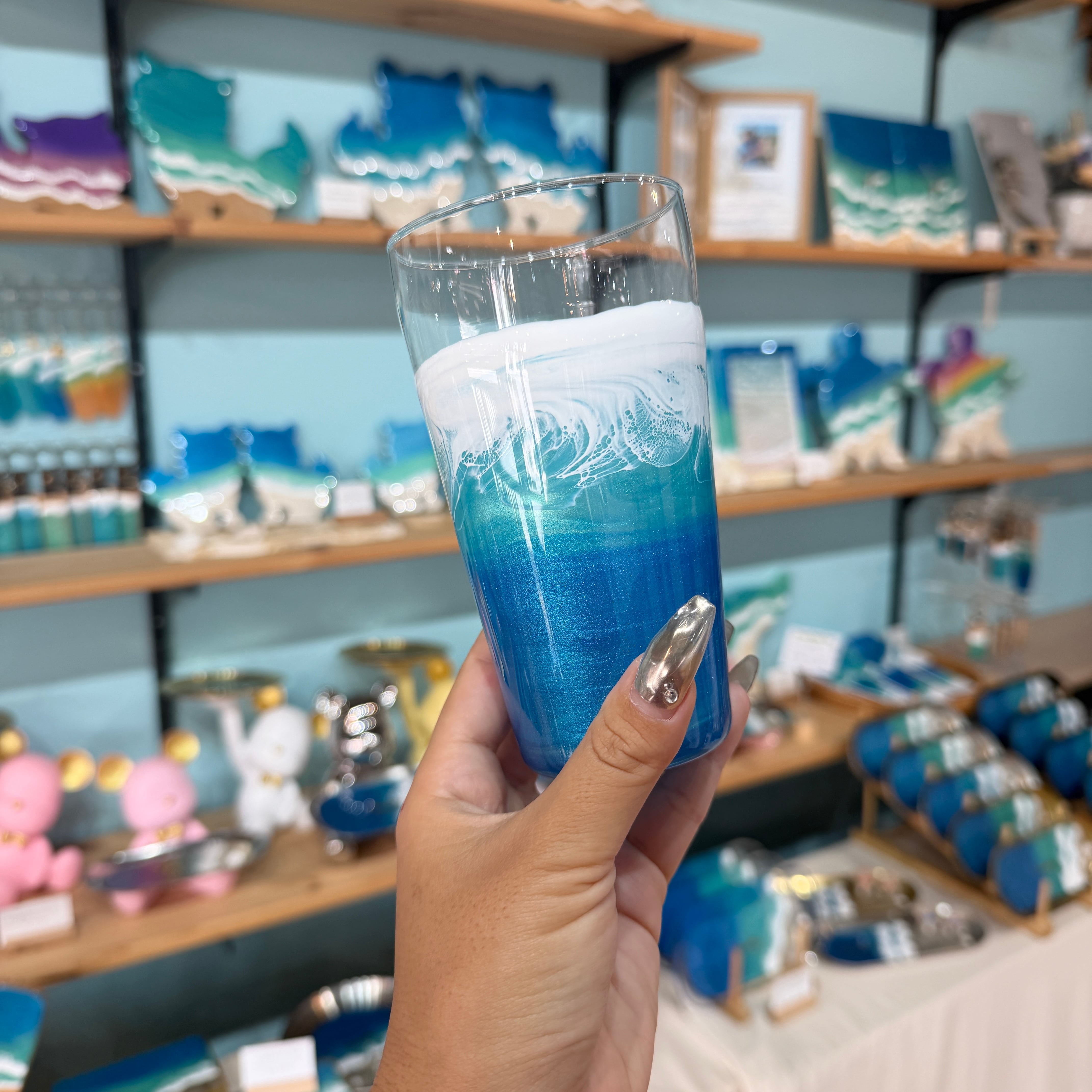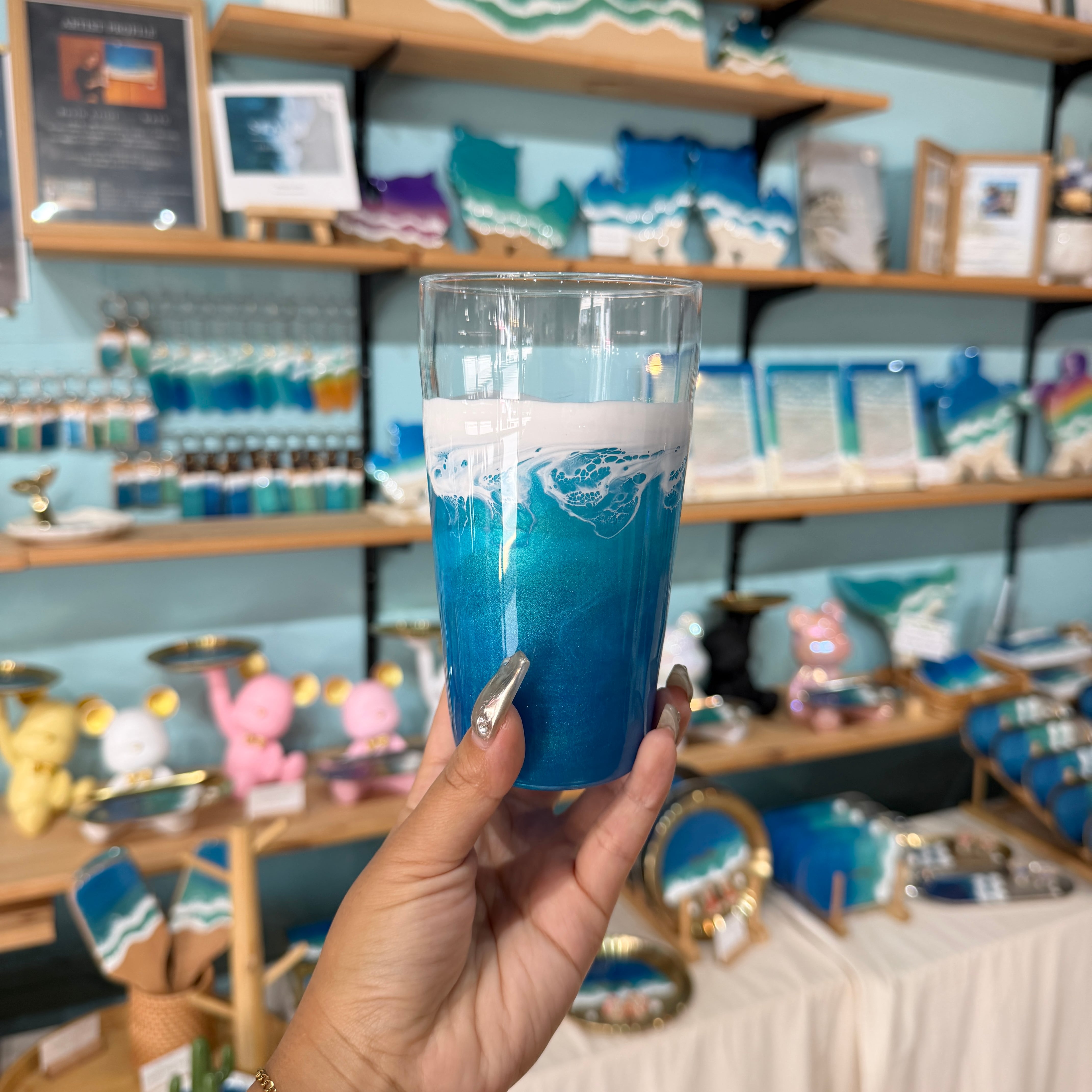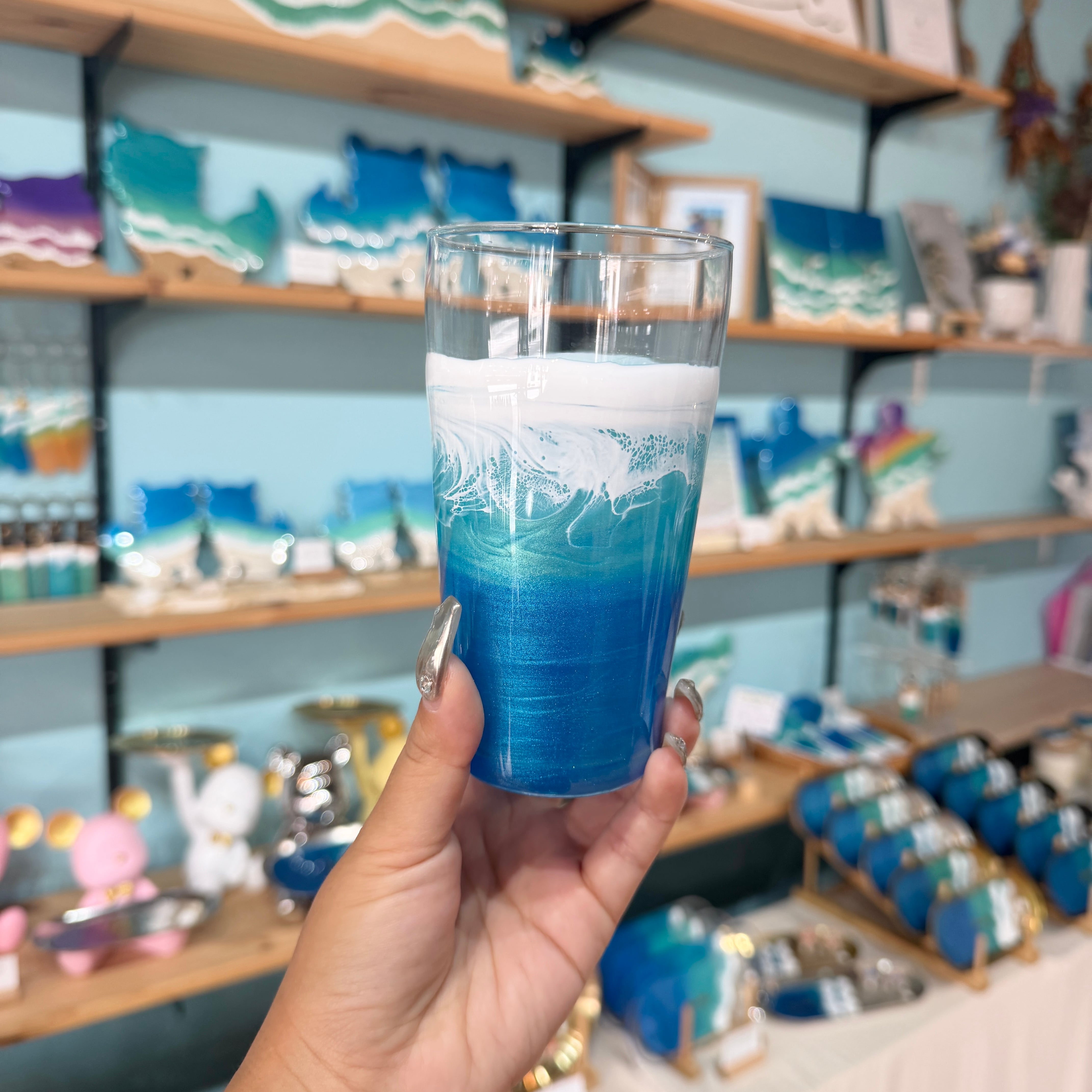 レジンアートは、色の出し方から波の作り方までひとつひとつ全て異なり、同じ作品はひとつとしてありません。