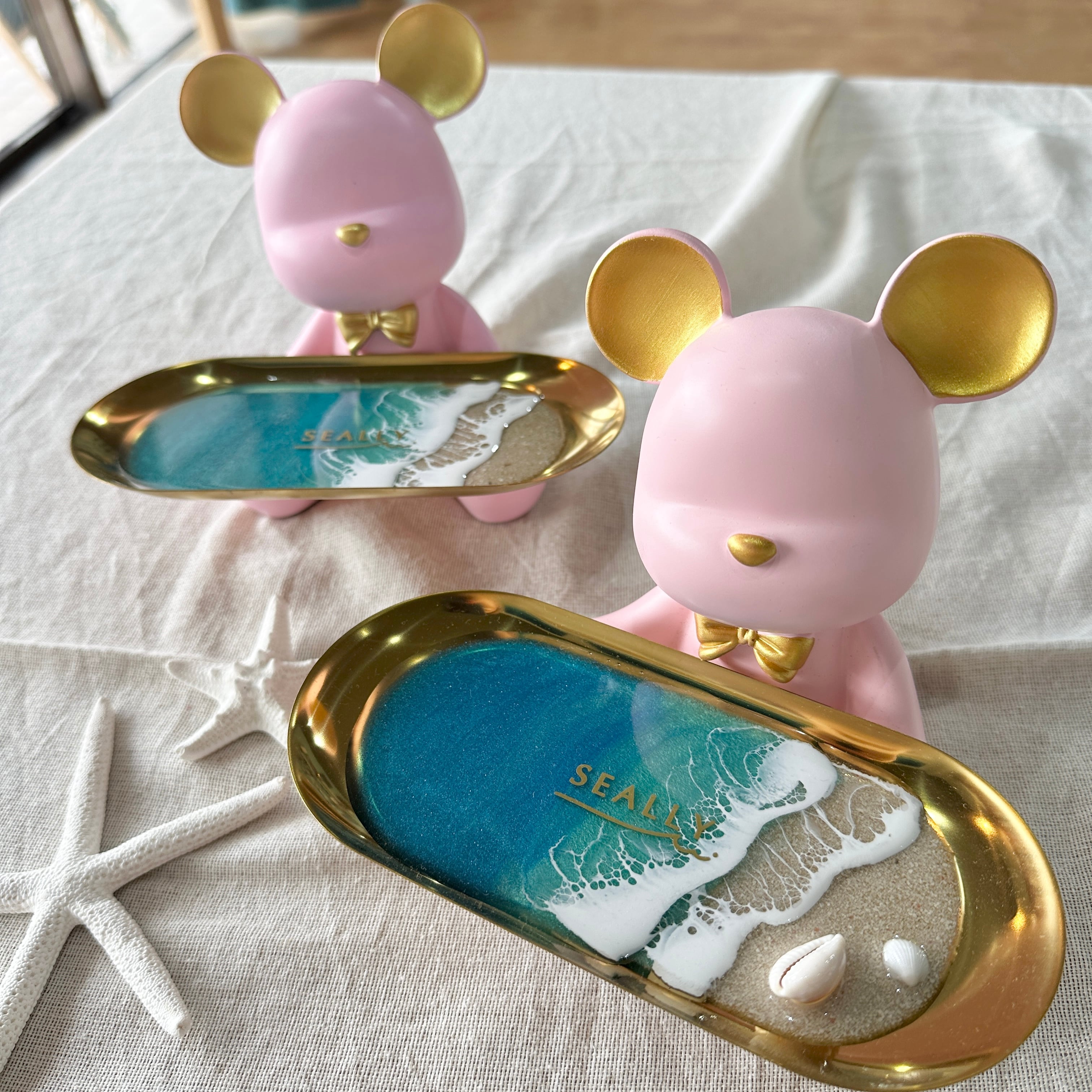 可愛いベアが持つトレーに小物を置くことができるアイテム。